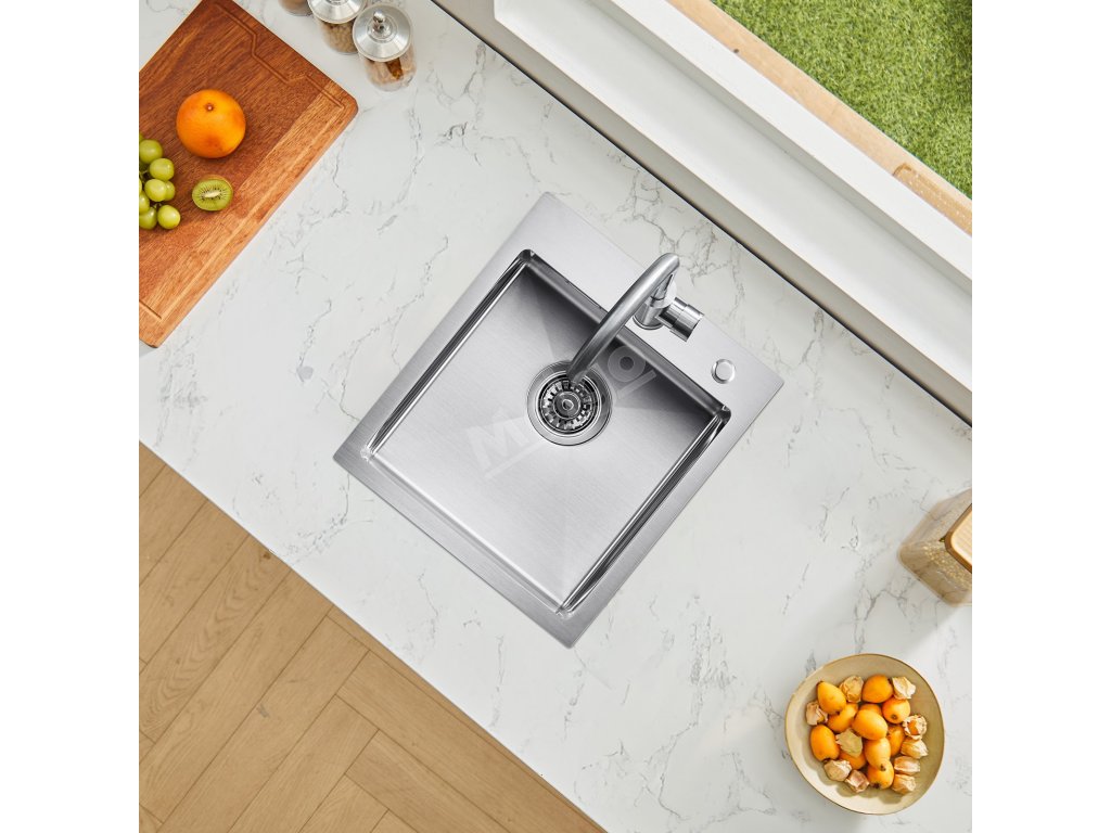 Vrchní barový dřez se snadno instaluje a nevyžaduje žádné větší úpravy kuchyňských skříněk nebo desky. Mimořádně silný okraj z nerezové oceli 304 o tloušťce 3 mm umožňuje bezpečnou instalaci na horní desku; silné tělo dřezu zajišťuje odolnost.