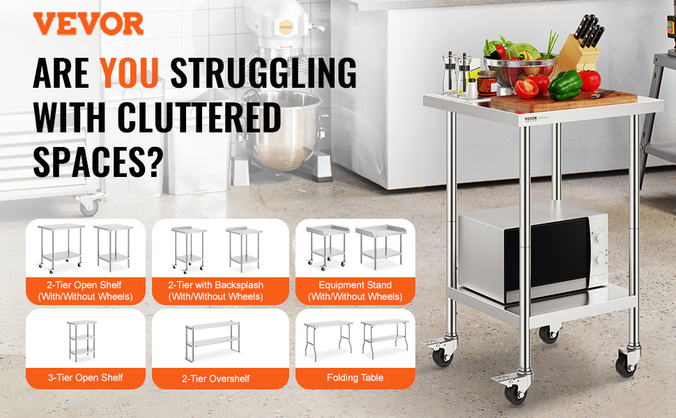 Pracovní stoly VEVOR z nerezové oceli se stylovým designem