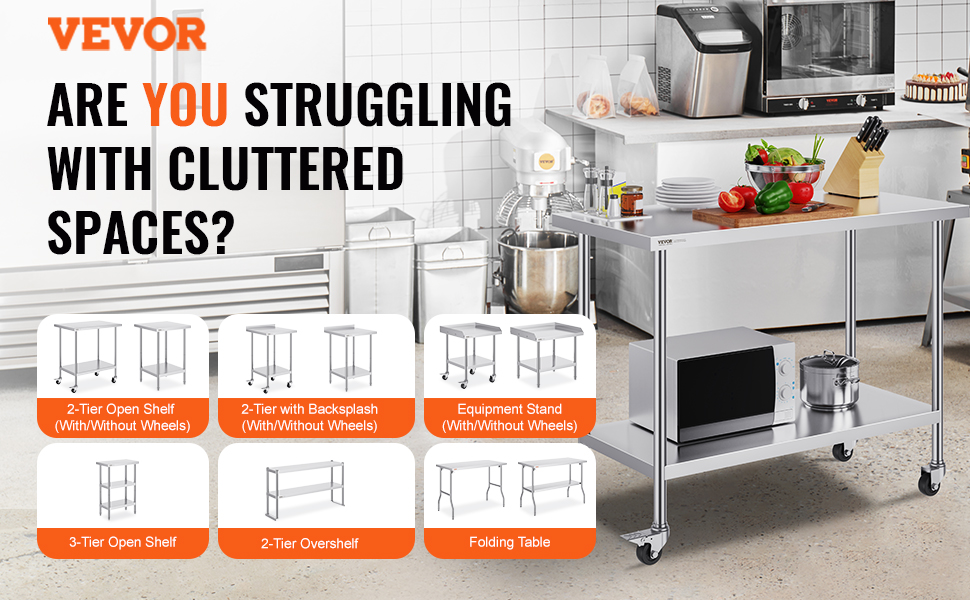 Pracovní stoly VEVOR z nerezové oceli se stylovým designem