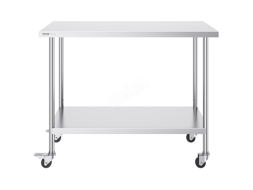 Nerezový pracovní stůl 24×48×38 inch, 4 kolečka, 3 nastavitelné výšky