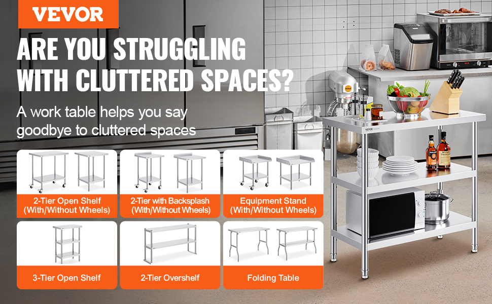 Pracovní stoly VEVOR z nerezové oceli se stylovým designem
