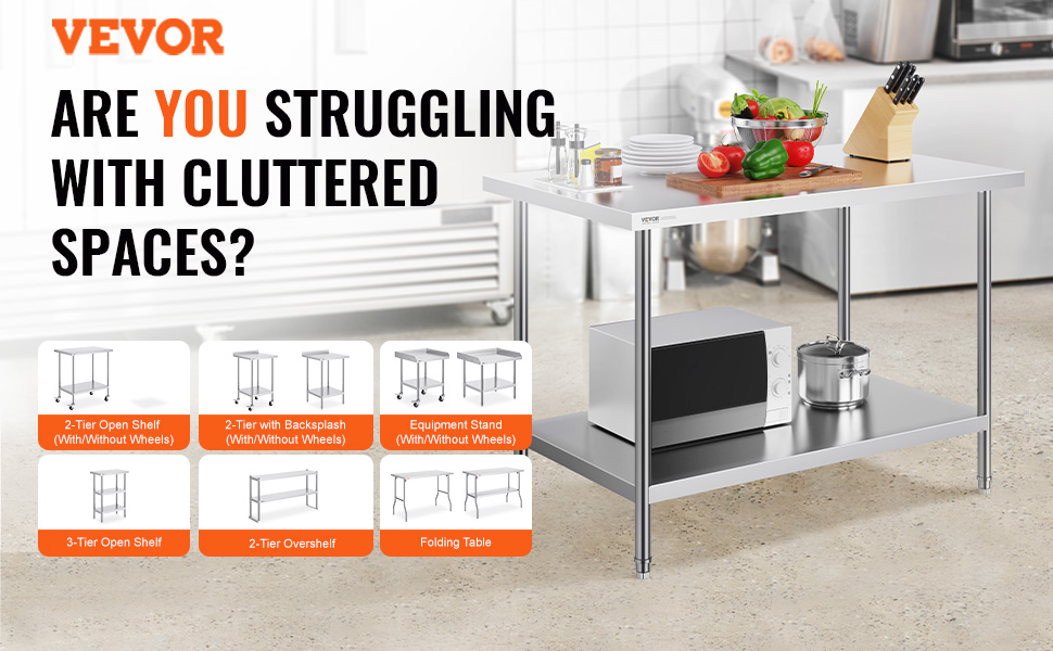 Pracovní stoly VEVOR z nerezové oceli se stylovým designem