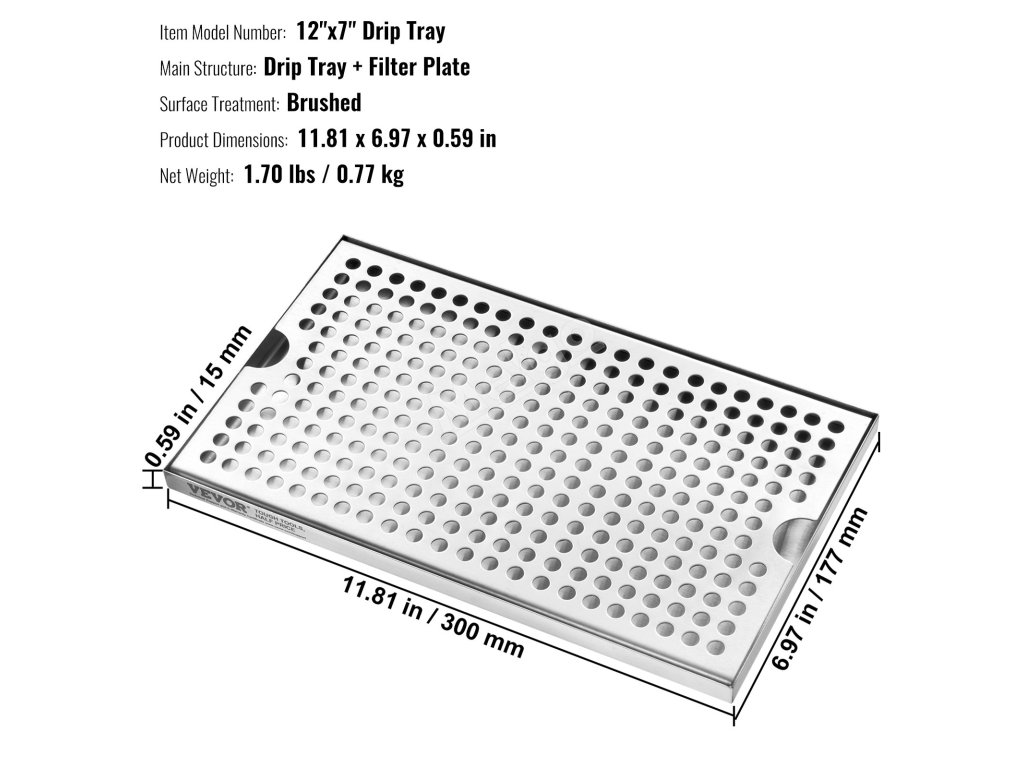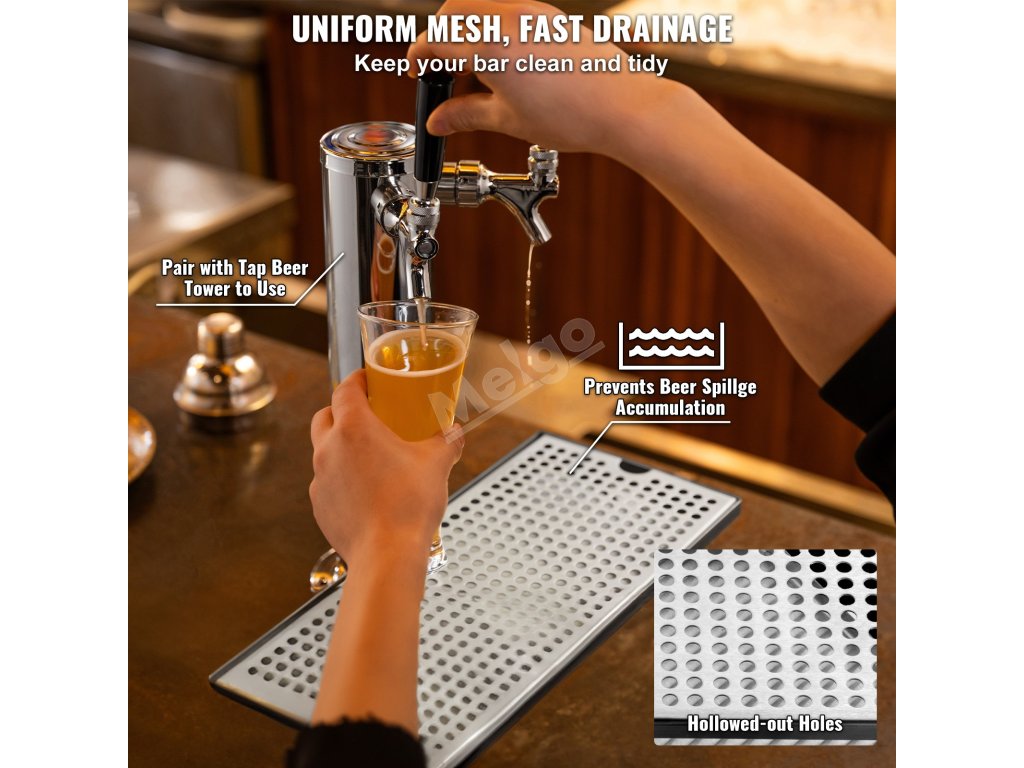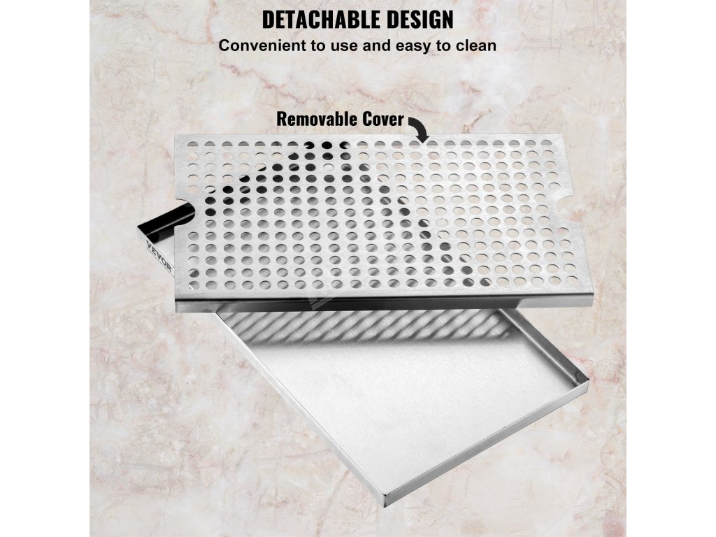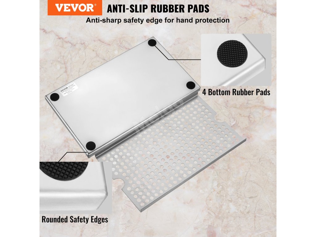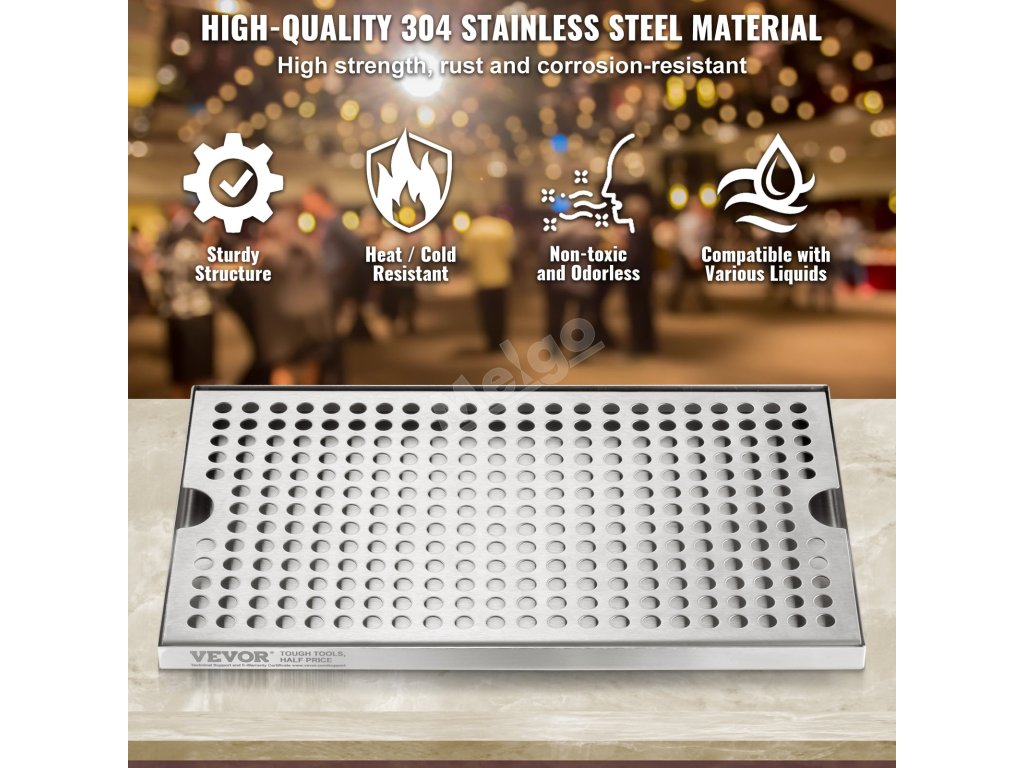 Rozlučte se s hromaděním tekutin pomocí systému VEVOR! Díky protiskluzovým gumovým podložkám zůstane bezpečně na svém místě a hladké zaoblené hrany zajistí bezpečné používání. Je vyroben z potravinářské nerezové oceli a vybaven odnímatelným krytem pro snadné čištění a bez problémů doplní váš sud na pivo nebo kávovar na espresso.