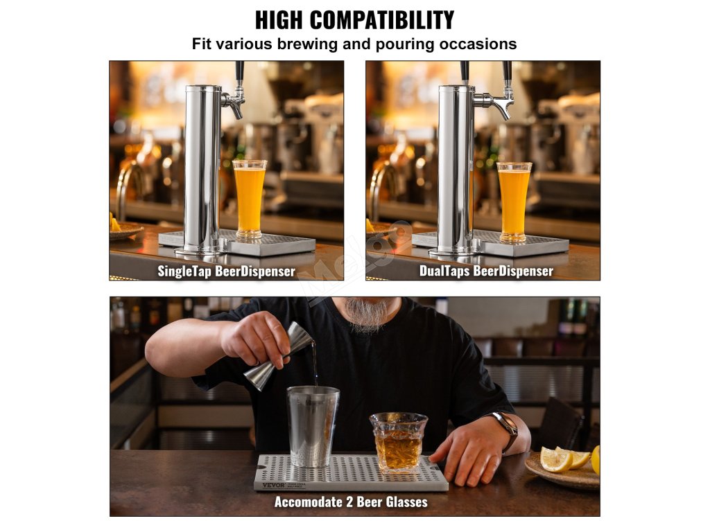 Vhodné pro většinu pivních věží s jedním a dvěma výčepními kohoutky, s dostatečným prostorem pro dvě pivní sklenice. Ať už se jedná o restauraci, domácí bar, kuchyni nebo hospodu, náš odkapávač na pivo do sudu se hodí a dodá vašemu prostoru pohodlí a čistotu.