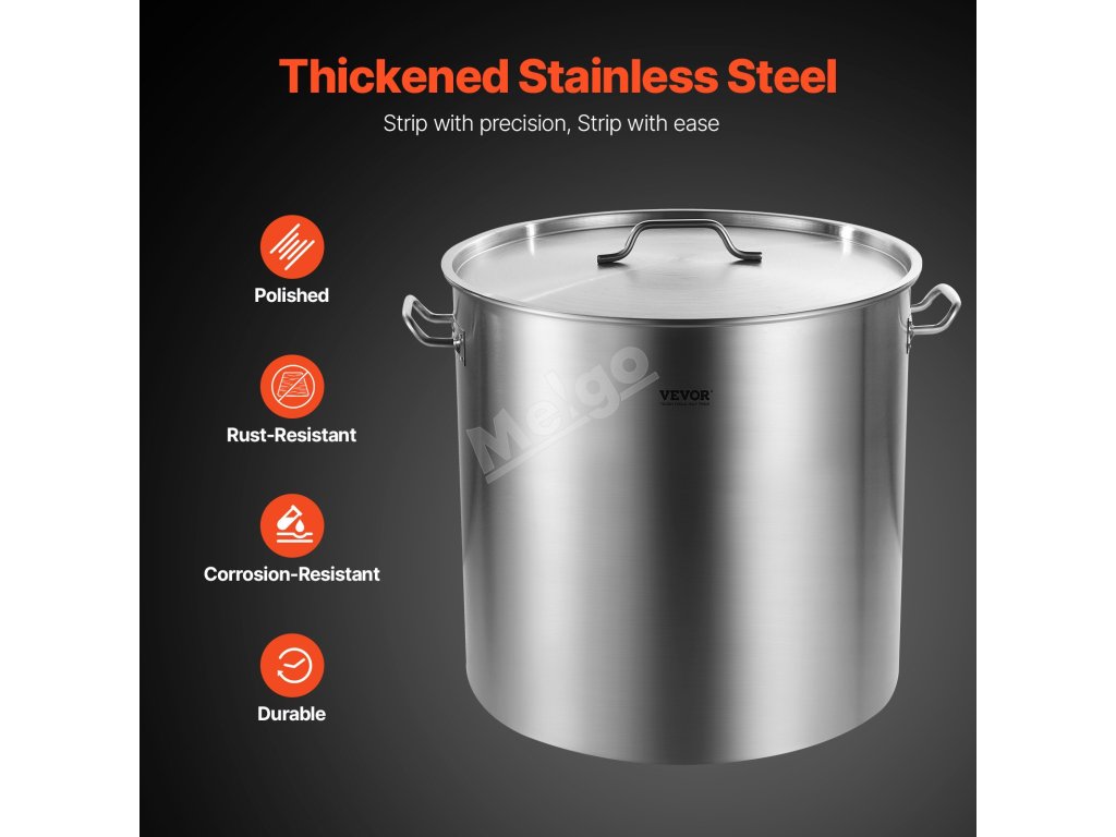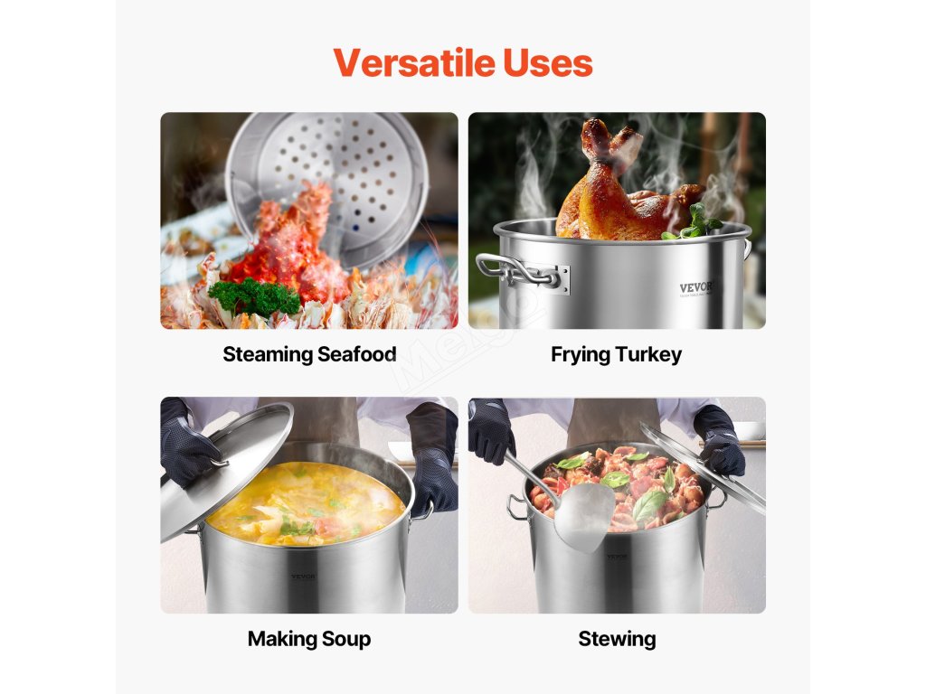 V hrnci na omáčku o objemu 100 qT lze vařit značné množství surovin najednou, takže je vhodný pro komerční použití v kuchyni i pro rodinné oslavy! Ideální pro dušení, přípravu polévek, vaření v páře a smažení!