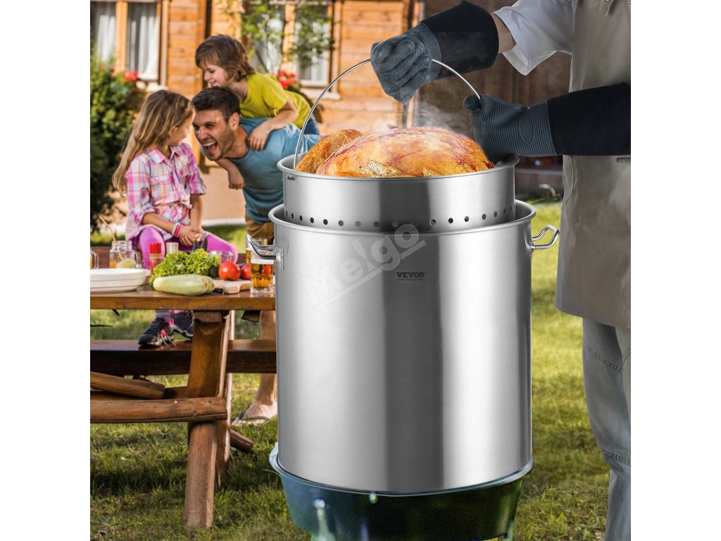 Nerezový velký hrnec 100 quart s košem, poklicí a rukojetí