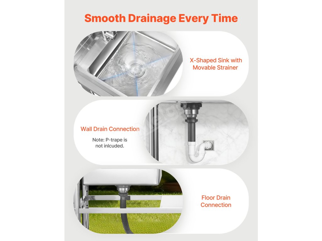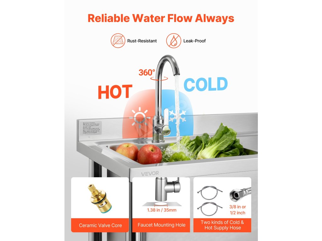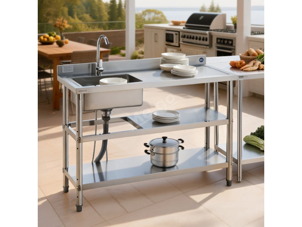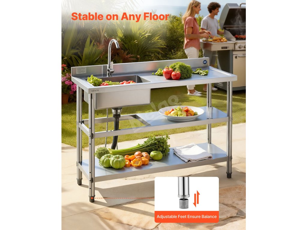 Konstrukce "vše v jednom" kombinuje pracovní desku, dřez a nastavitelnou odkládací polici, takže mytí a organizace jsou snadné. Prostorný dřez si poradí s různými úklidovými úkoly, zatímco nastavitelné spodní police poskytují flexibilní úložný prostor pro různé předměty, takže se snadno přizpůsobí různým scénářům.