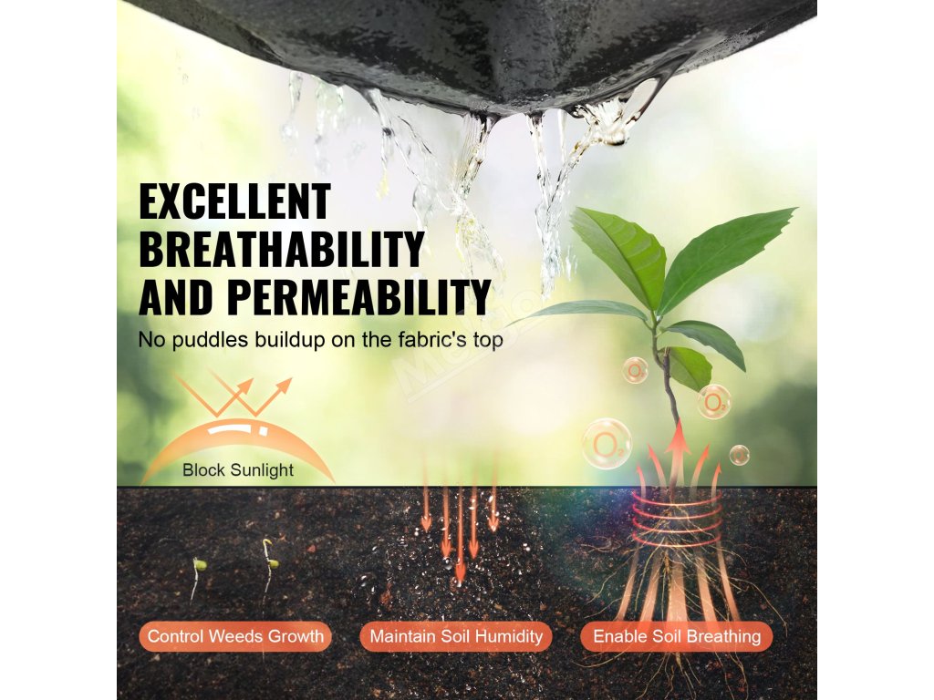 Rozlučte se s tvrdohlavým plevelem! Vysoce hustá tkanina VEVOR 6 x 100 stop, 8OZ na ochranu krajiny před plevelem se může pochlubit výjimečnou propustností a prodyšností a zároveň odolností proti roztržení, korozi a erozi. Zlepšuje zdraví půdy tím, že kontroluje růst plevele, a spolehlivě chrání zahradu.