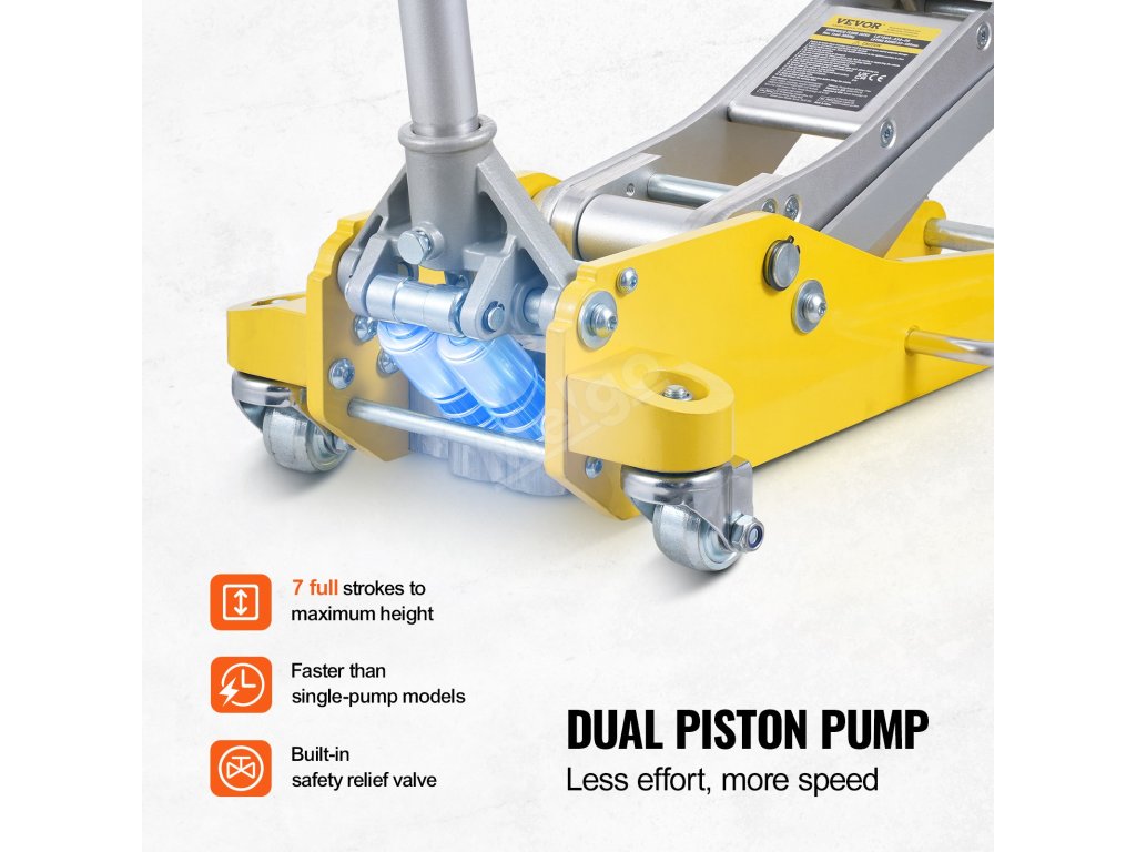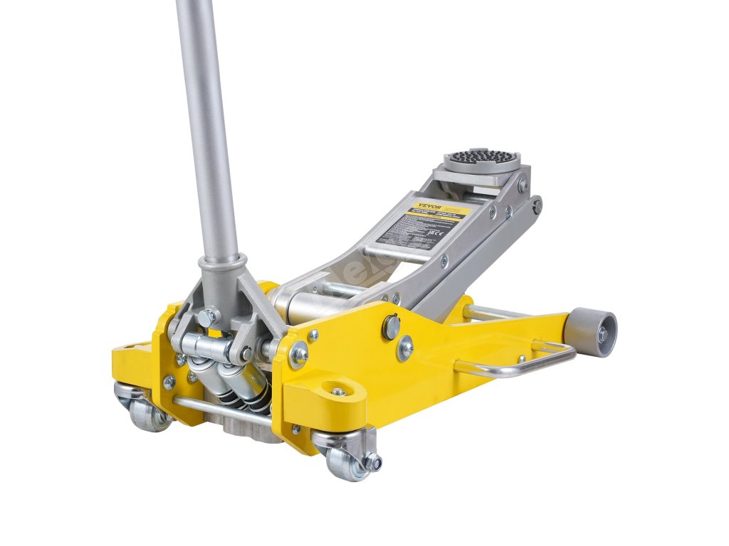Je vyroben z vysoce pevného hliníku, takže podlahový zvedák je spolehlivým a robustním nástrojem pro pravidelnou údržbu a opravy automobilů. Tento materiál je lehčí a přenosnější než železo.