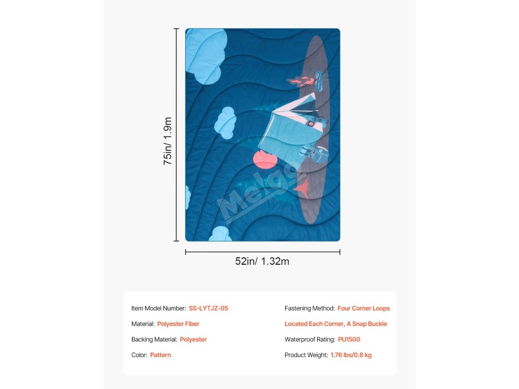Proměňte svůj zážitek z kempování s touto kempingovou dekou, která se snadno promění v příjemnou pláštěnku nebo pončo. Je vyrobena z měkkého polyesterového vlákna 220GSM a nabízí vynikající větruodolné a nepromokavé vlastnosti. Deka má rozměry 75" x 52", je také lehká a snadno se skladuje.