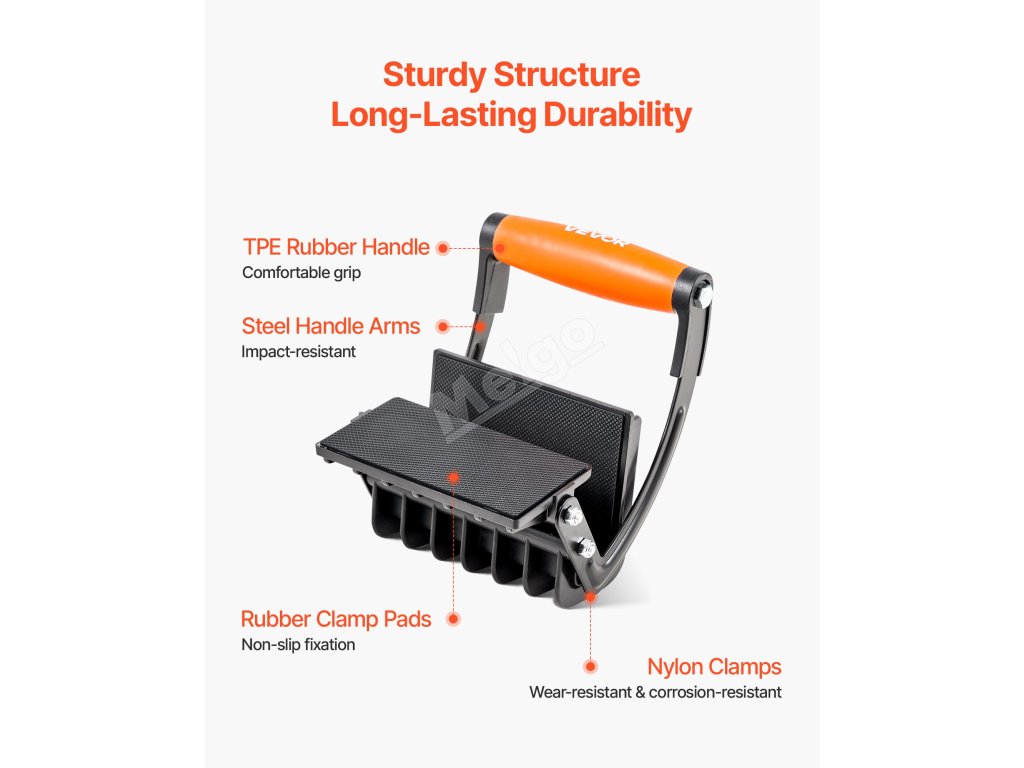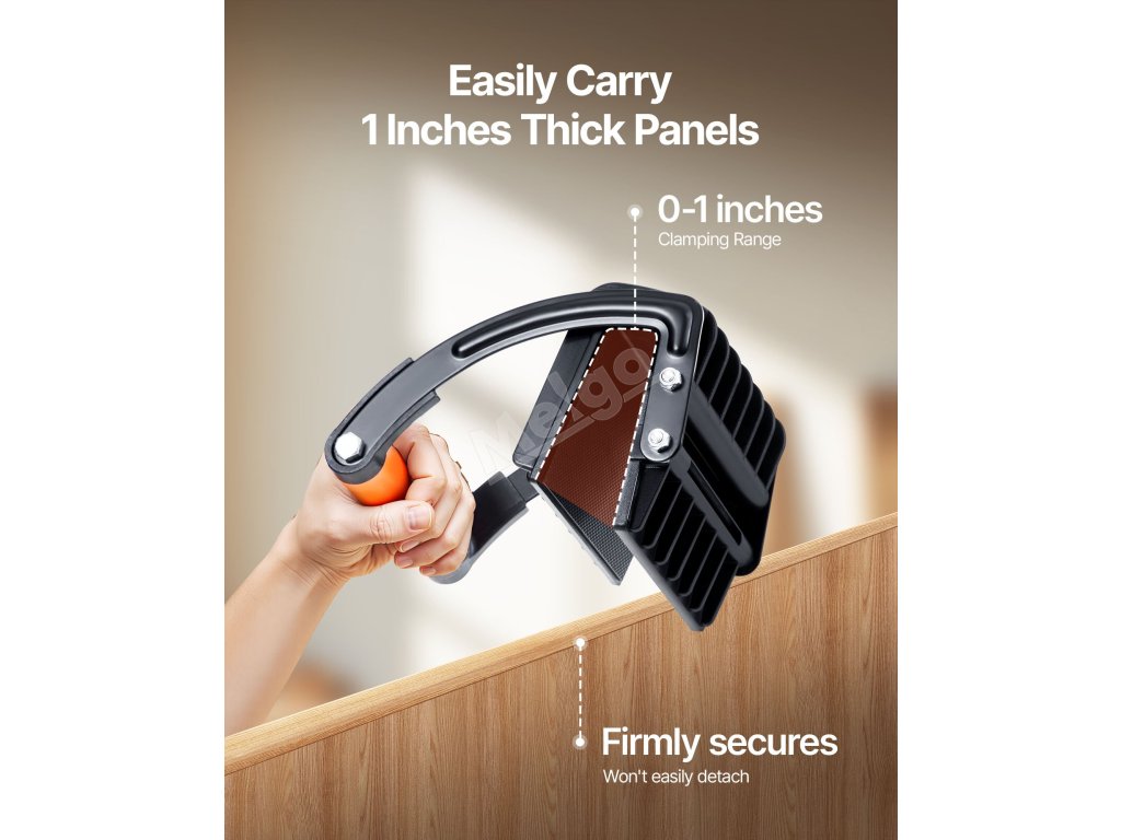 Tento nástroj na přenášení překližky s gumovými podložkami NBR bezpečně udrží vaše desky na místě, zabrání jejich sklouznutí a ochrání povrch před poškrábáním. Přenášejte s jistotou!