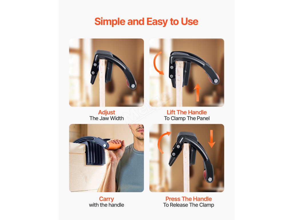 | Hlavní materiál | Nylonové svorky + protiskluzové podložky z nitrilové pryže + ocelová ramena + měkká pryžová rukojeť |