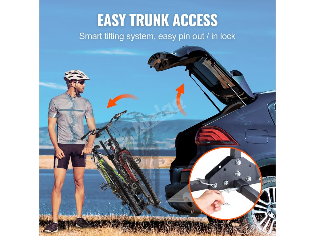 Náš nosič kol je kompatibilní s mnoha malými a středně velkými rodinnými automobily, SUV, pickupy a závěsnými zařízeními pro obytné vozy. V kombinaci s bezpečnostním čepem a zařízením proti kývání zajišťuje bezpečnou a pevnou instalaci, která zajistí vaši bezpečnost na cestách.