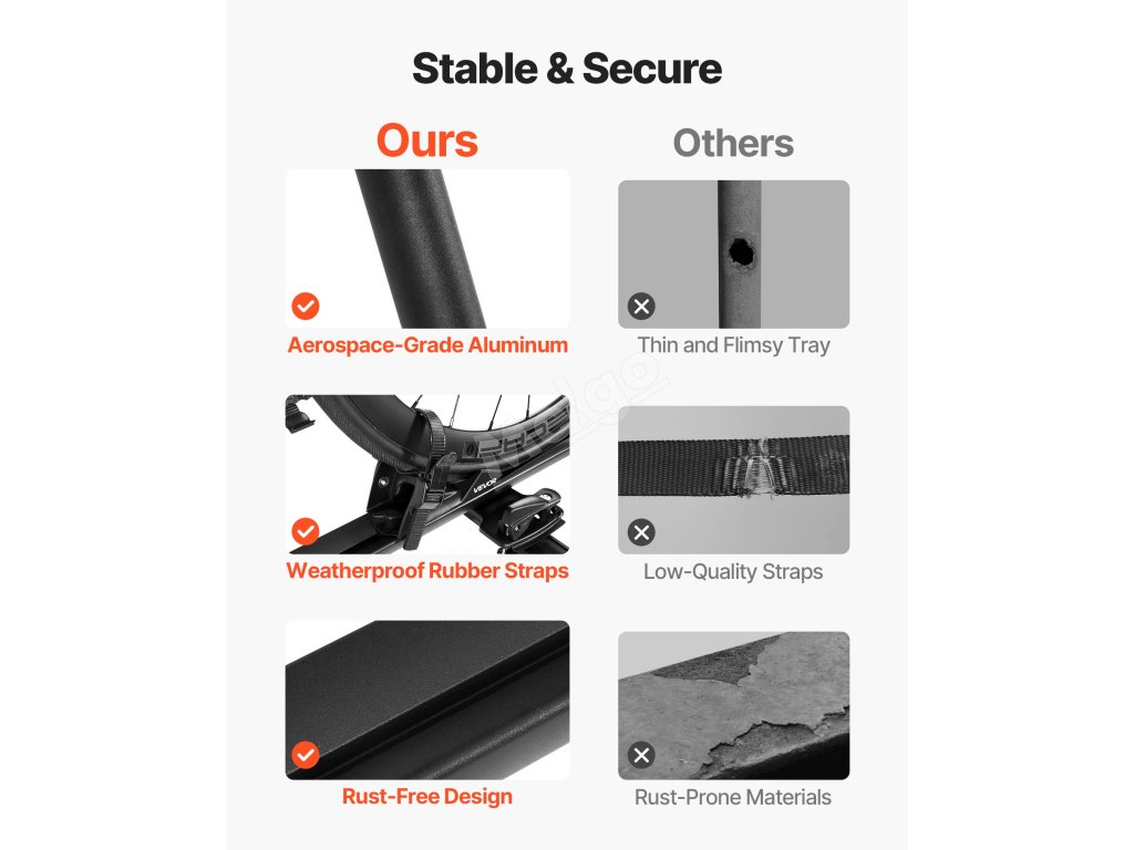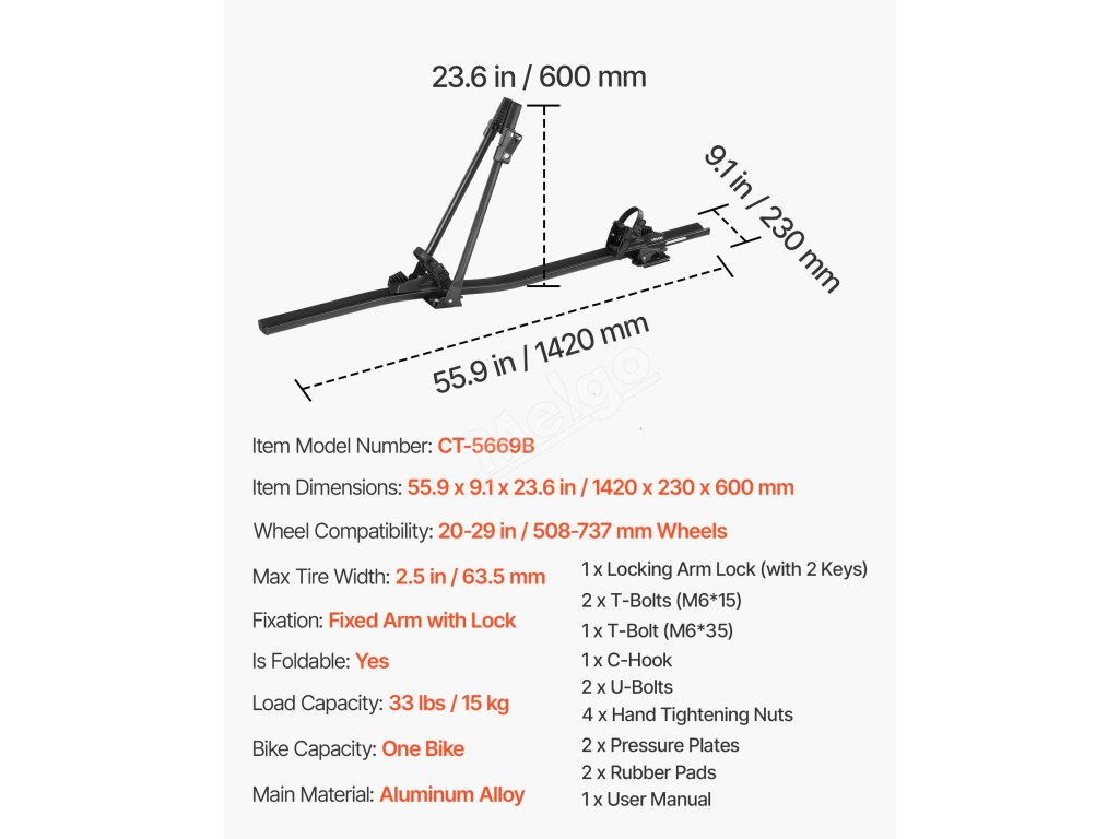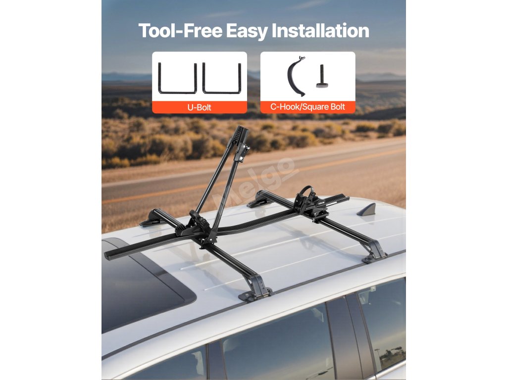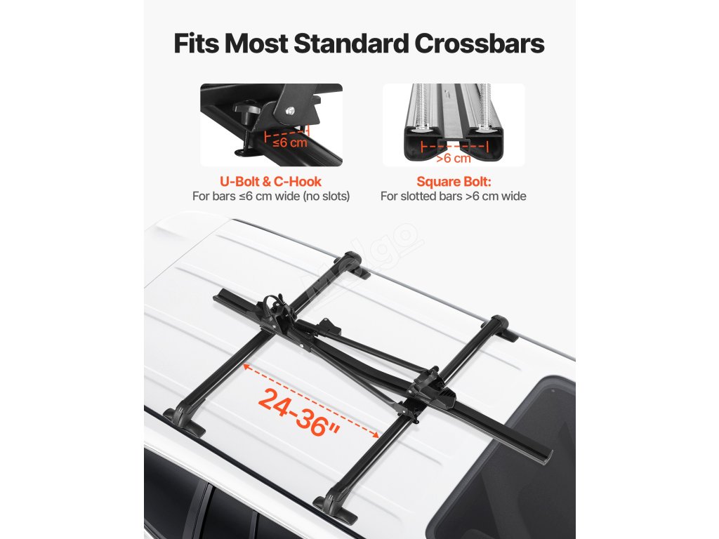 Tento střešní nosič kol je vhodný pro 99 % standardních příčníků včetně typů OEM, čtvercových a oválných. Podle stylu příčníku si můžete vybrat mezi U-šrouby nebo čtvercovými šrouby.