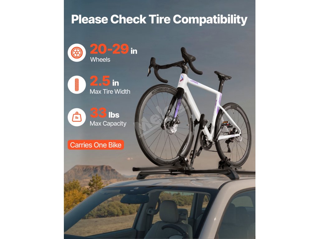 Podporuje velikosti kol od 20 do 29 palců a šířky pneumatik až do 2,5 palce. Kompatibilní s horskými koly, silničními koly, dětskými koly a koly s tlustými pneumatikami (v rámci omezení velikosti).