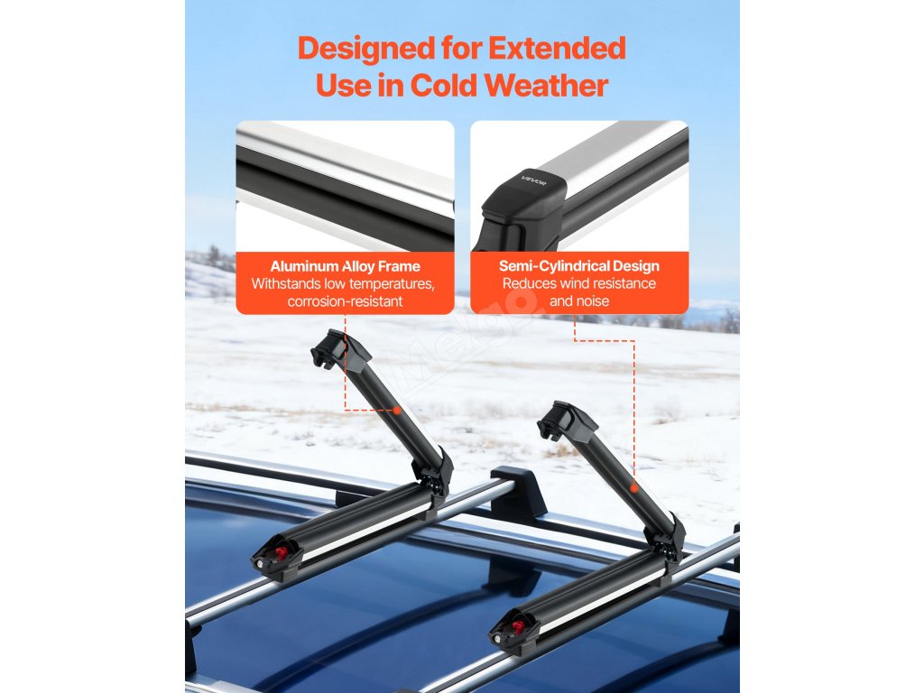 Tento nosič snowboardů je vyroben z hliníkové slitiny odolné proti korozi a rzi, takže vydrží i drsné zimní podmínky. Robustní gumové podložky proti poškrábání pevně drží lyže, odolávají poškození během přepravy a zajišťují bezpečné a pohodlné cestování.