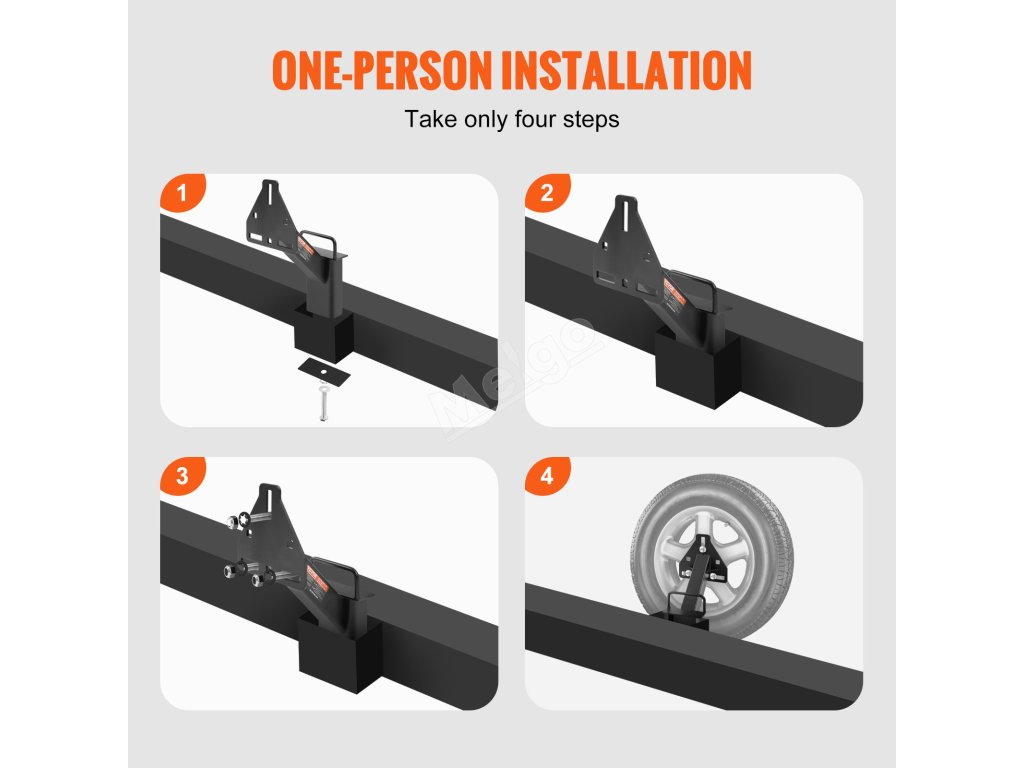 Nezapomeňte si na cesty vzít náš nosič náhradních pneumatik, který je nezbytný pro hladký průběh cesty. Poskytuje bezpečné místo pro náhradní pneumatiku a je kompatibilní s více modely přívěsů.