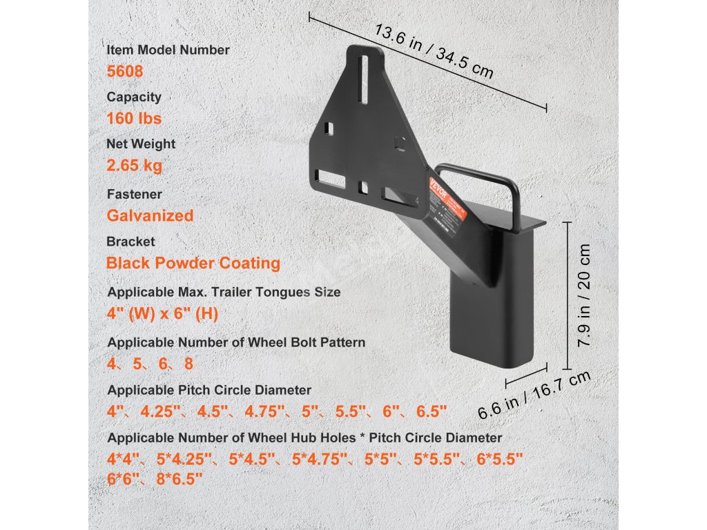 Nosič rezervní pneumatiky pro přívěs 160 lbs pro 4/5/6/8 šroubů
