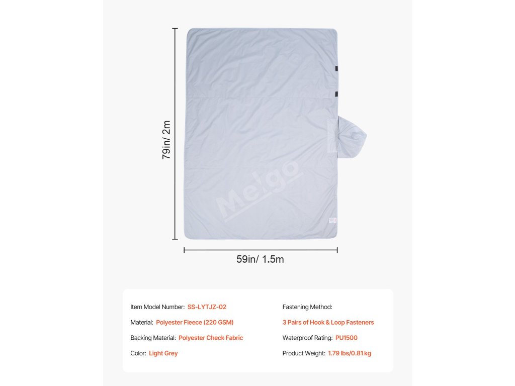 Proměňte svůj zážitek z kempování s touto kempingovou dekou, která se snadno promění v příjemnou pláštěnku nebo pončo. Je vyrobena z měkkého polyesterového rouna 220GSM a nabízí vynikající větruodolné a nepromokavé vlastnosti. Díky rozměrům 79" x 59" je také lehká a snadno se skladuje.