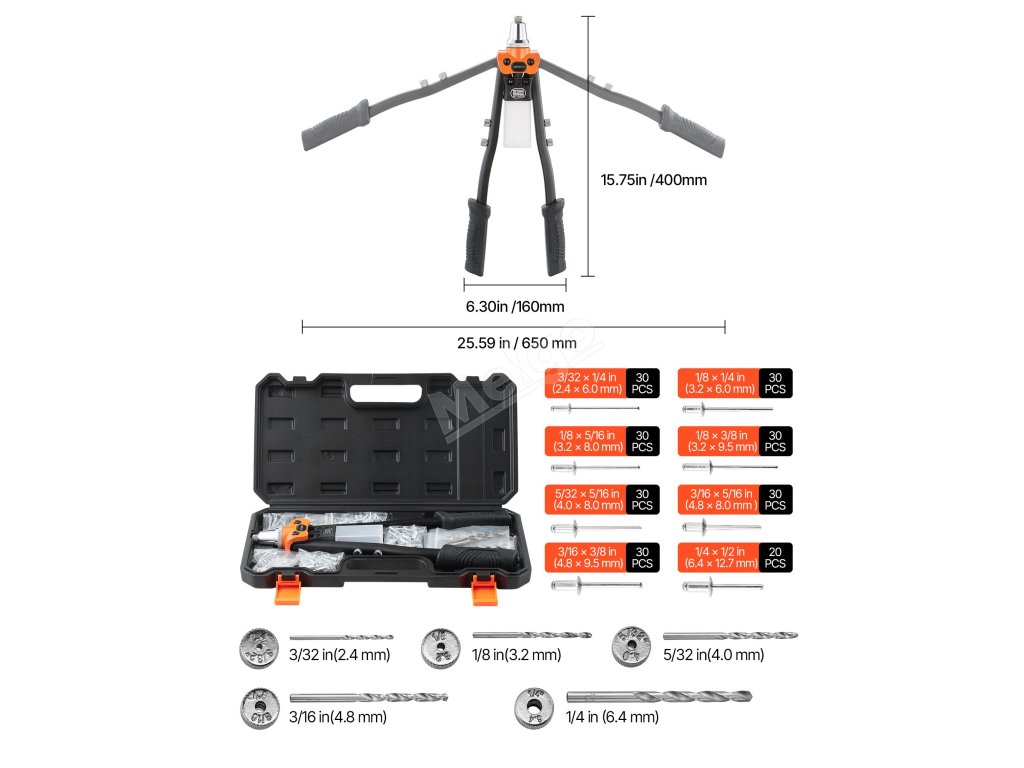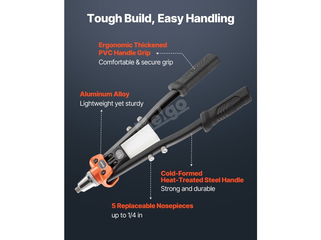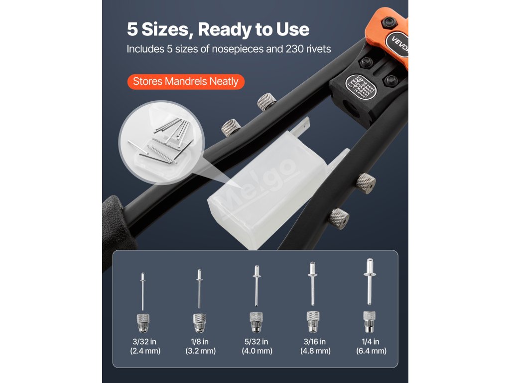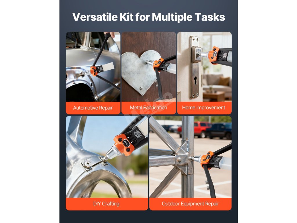 Tato kompletní sada nýtovacích pistolí je přesně tam, kde ji potřebujete - úhledná, spolehlivá a připravená k použití - od domácích oprav až po dílenské projekty.