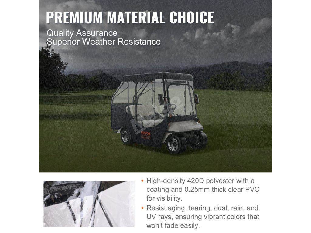 Tento průsvitný kryt golfového vozíku je vhodný pro 2 nebo 4místné vozy Yamaha, EZGO a Club Car s velkou nosností včetně vozíků 2+2 se zadními sklopnými sedadly.