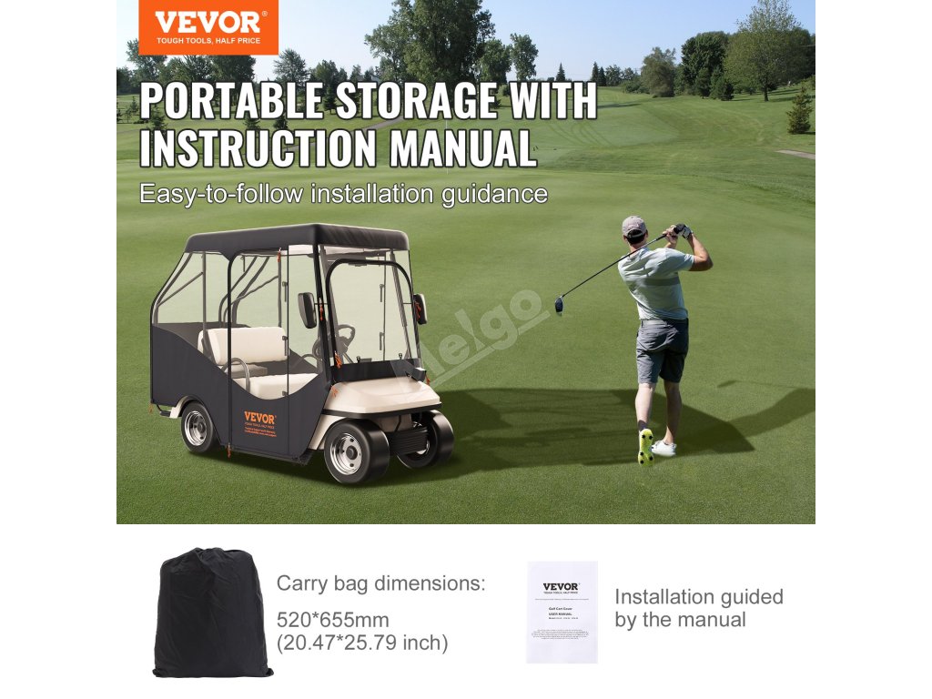 Náš vodotěsný kryt golfového vozíku odolný proti slunečnímu záření je dodáván včetně návodu k bezproblémové instalaci.