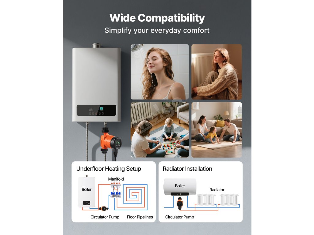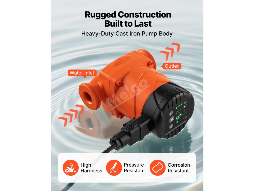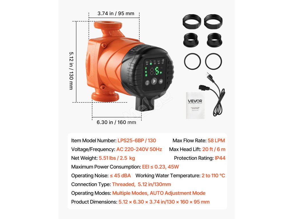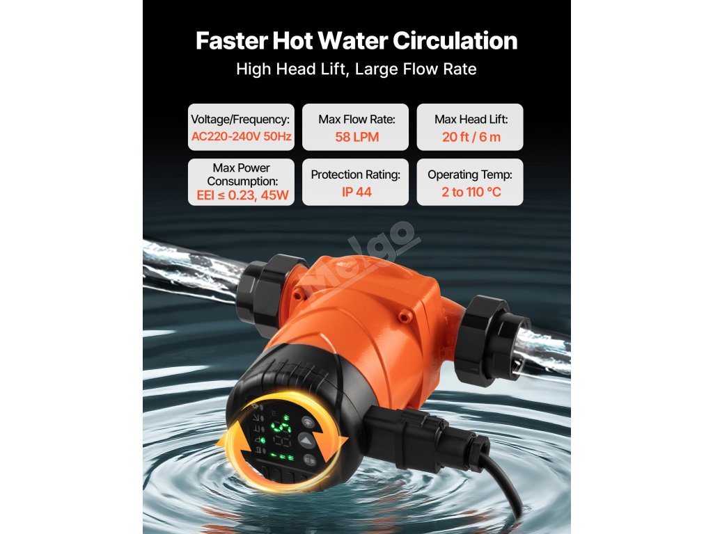 Toto oběhové čerpadlo je vyrobeno z odolné litiny a odolává vysokým teplotám a tlaku. Je vybaveno motorem ECM s permanentním magnetem, automatickým nočním režimem a zpětným ventilem a zajišťuje tichý a spolehlivý provoz. Poskytuje vynikající zdvih a průtok pro energeticky účinnou cirkulaci teplé vody.