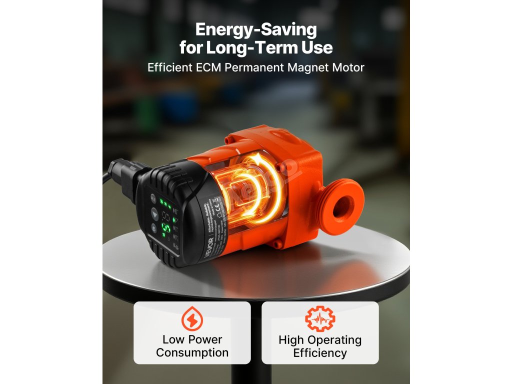 Vysoce účinné oběhové čerpadlo vybavené výkonným motorem s permanentními magnety, které má přitom nízkou spotřebu energie a poskytuje vysoký výkon, stabilní provoz a dlouhou životnost. Automatický noční úsporný režim snižuje zatížení v době mimo špičku, čímž pomáhá šetřit elektrickou energii a snižovat náklady na energii.