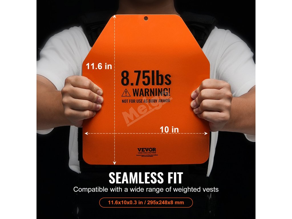 Tyto zátěžové desky jsou vyrobeny z odolné oceli se zaoblenými rohy a hladkými hranami a jsou navrženy pro dlouhou životnost. Pro větší ochranu jsou zabaleny do tří vrstev bublinkové fólie. Poznámka: Nejsou určeny k použití jako neprůstřelné vesty.