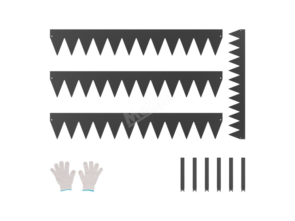 Podlouhlá konstrukce s hroty zajišťuje snadnou instalaci, protože pomáhá zábraně proniknout do země s menší námahou.