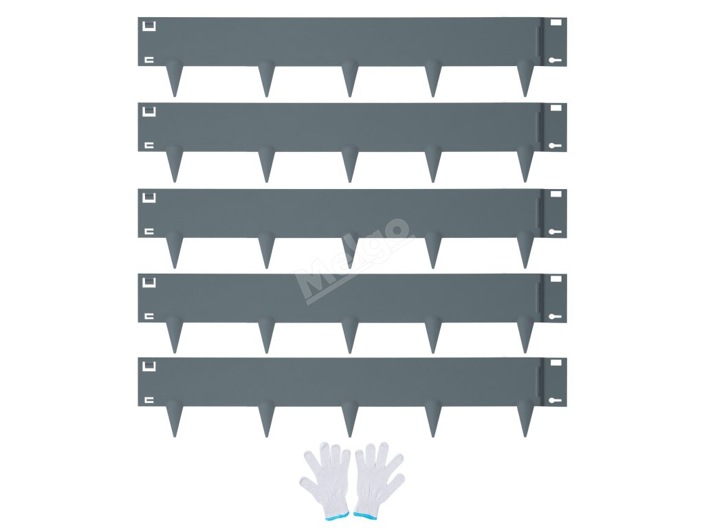 Obdržíte 5 kusů obrub trávníku a pár montážních rukavic. Každý plot má rozměry 39 x 5 palců a prodloužený hrot usnadňuje jeho upevnění do země. Zabraňují růstu plevele a udržují vaši zahradu čistou a udržovanou.
