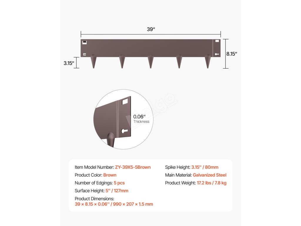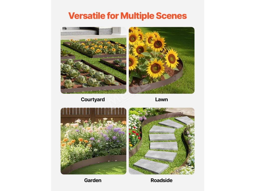 Naše kovové krajinné obruby jsou vyrobeny z pozinkované oceli s povrchovou úpravou práškovým lakem odolným proti korozi a jsou konstruovány tak, aby odolávaly povětrnostním vlivům. Snadno se instaluje a je dostatečně pružná, aby se ohnula do jakéhokoli tvaru, takže je ideální pro vytváření ohraničení zahrad a okrajů cest. Efektivní řešení pro udržení pořádku v krajině.