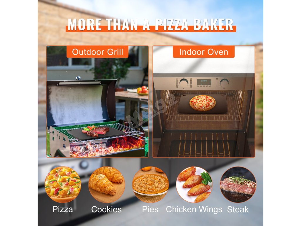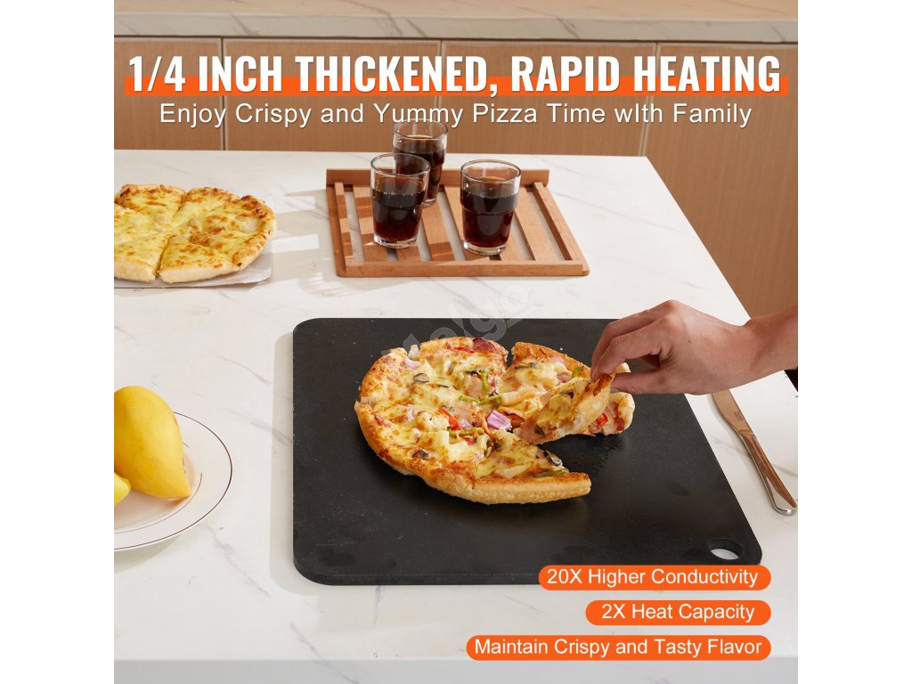 Tento kámen na pizzu z uhlíkové oceli zajišťuje rychlé zahřátí a rovnoměrné pečení. Díky 20× vyšší tepelné vodivosti a dvojnásobné tepelné kapacitě ve srovnání s keramickými kameny poskytuje vynikající izolační výkon pro vždy dokonalé výsledky pečení.