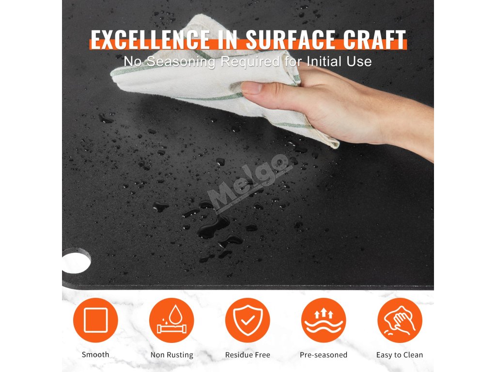 Pánev na pizzu VEVOR z vyztužené uhlíkové oceli o tloušťce 1/4" je dokonalým společníkem při vaření. Vyznačuje se rychlým a rovnoměrným ohřevem s 20x vyšší tepelnou vodivostí než keramické kameny, což má za následek křupavou a chutnou pizzu. Nemusíte si dělat starosti s počátečním kořeněním; dodává se již předkořeněná a připravená k použití.