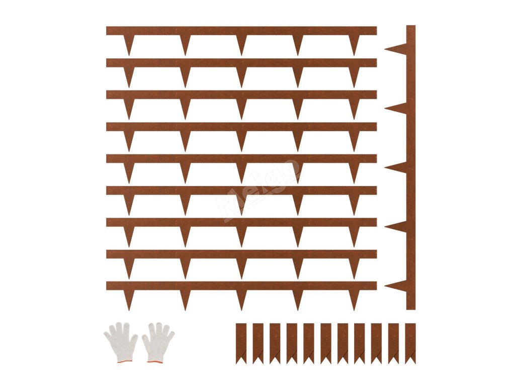 Podlouhlá konstrukce s hroty zajišťuje snadnou instalaci, protože pomáhá zábraně proniknout do země s menší námahou.
