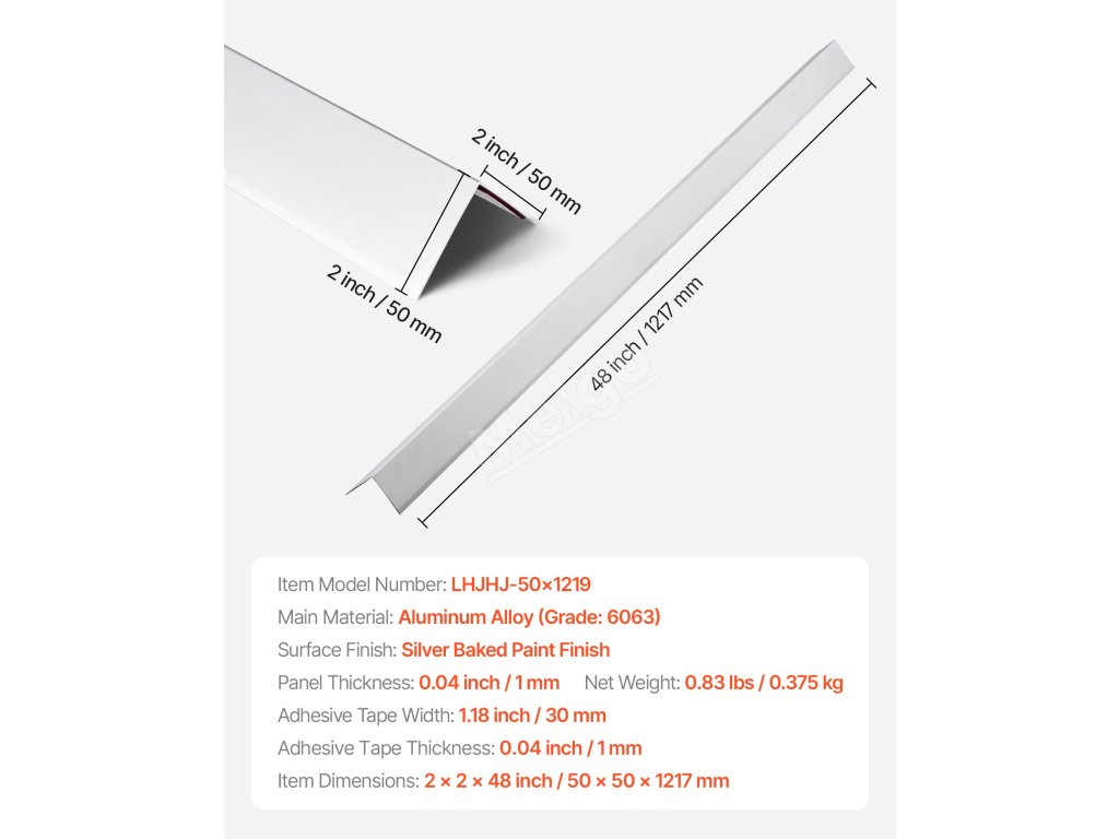 Ochrana rohu stěny hliníkový l-profil 50×50×1217 mm, 12 ks, 3m páska