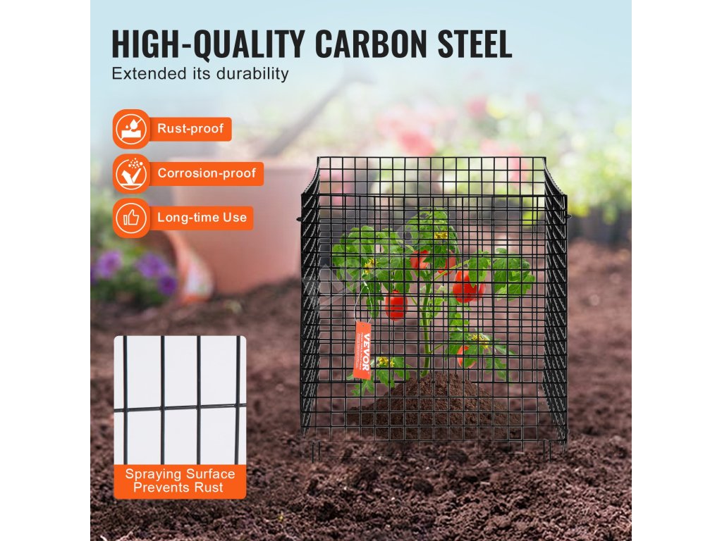 Tento chránič rostlin je vyroben z vysoce kvalitní uhlíkové oceli s práškovým nástřikem, je odolný proti korozi a má dlouhou životnost. Jeho robustní konstrukce zajišťuje spolehlivost a udržuje drobné živočichy mimo dosah vašich rostlin.