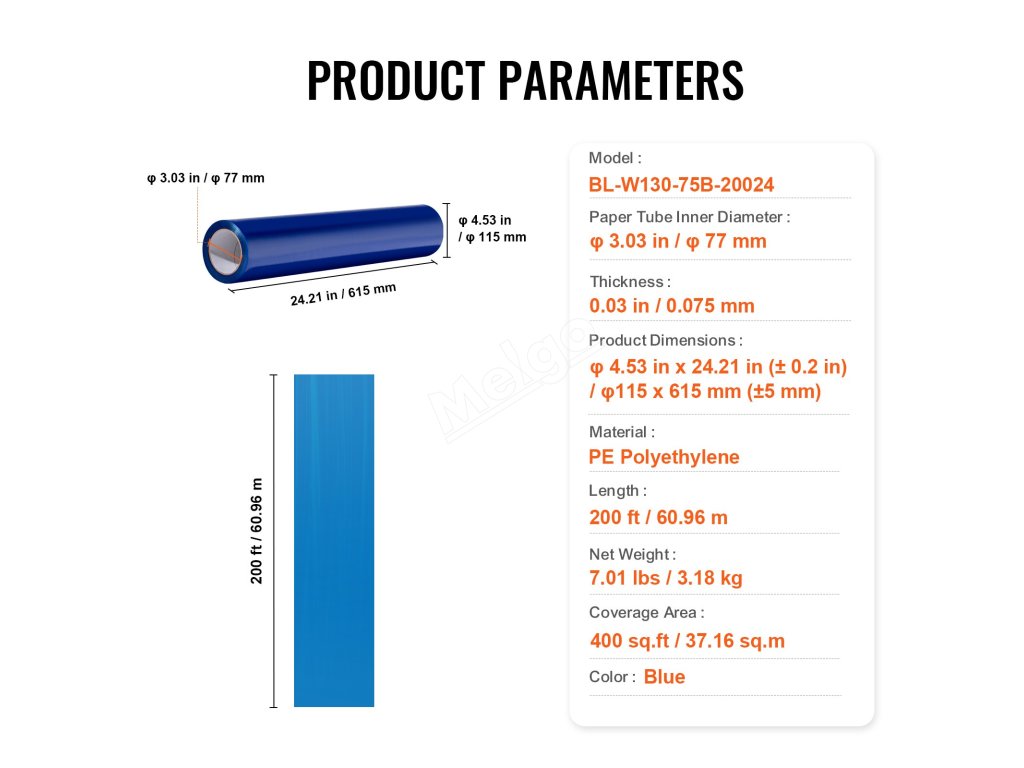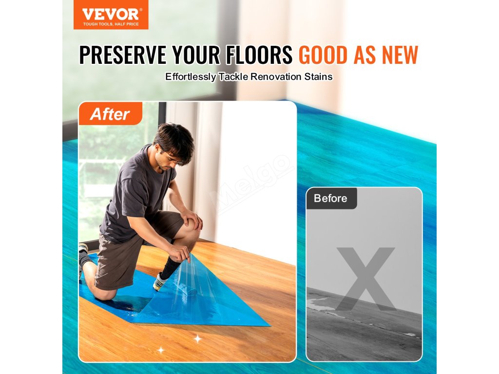 Ochranná fólie na podlahy 24"×200' polyethylenová, s lepidlem, modrá