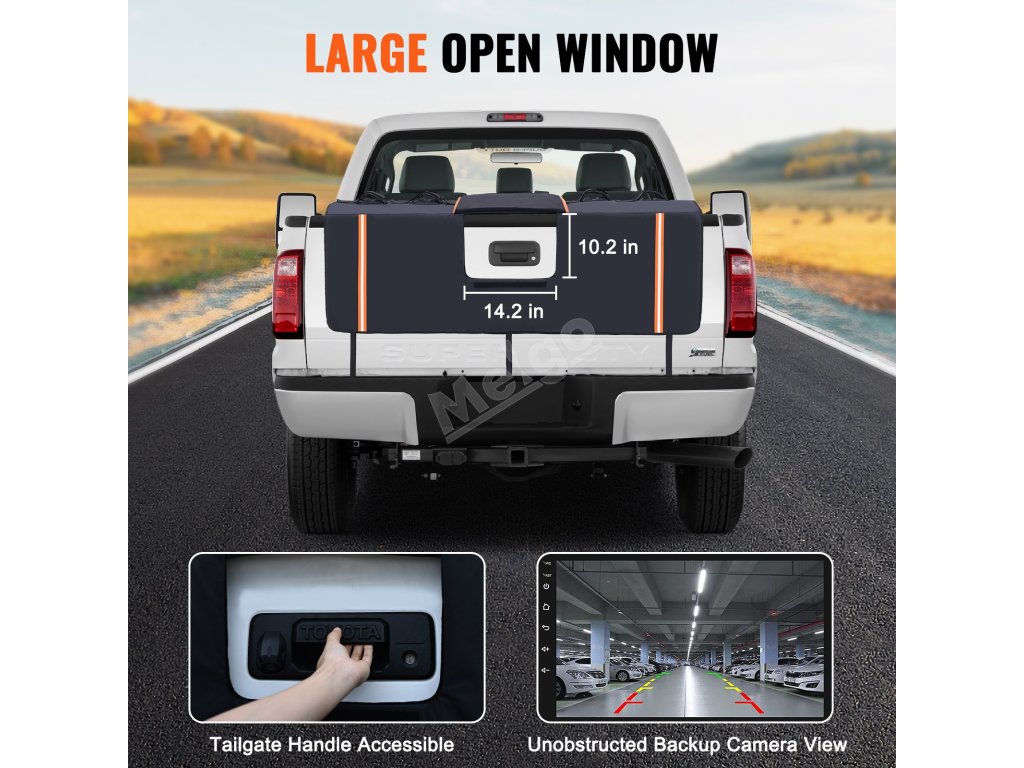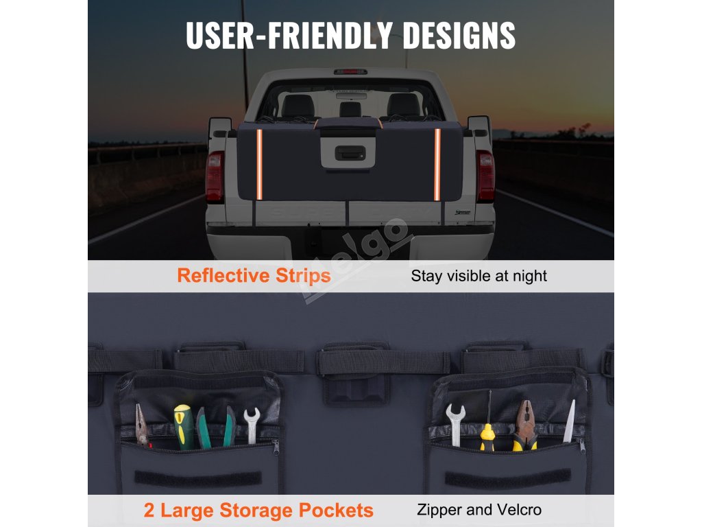 Díky zadnímu otevíracímu okénku si užijete vynikající uživatelský zážitek. Nezakrývá kameru ve zpětném zrcátku. Výrazné reflexní pruhy zvyšují viditelnost v noci. Dvě velkokapacitní úložné tašky navíc poskytují organizovaný úložný prostor pro vaše nářadí a nezbytné věci.