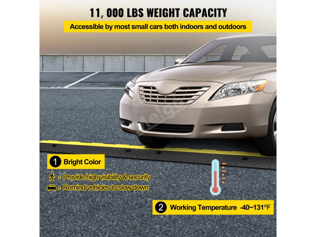Tento gumový příjezdový hrbol je vyroben z komerční termoplastické pryže. PVC kryt je navržen s protiskluzovou strukturou na povrchu, která zajišťuje bezpečnost řidičů automobilů.
