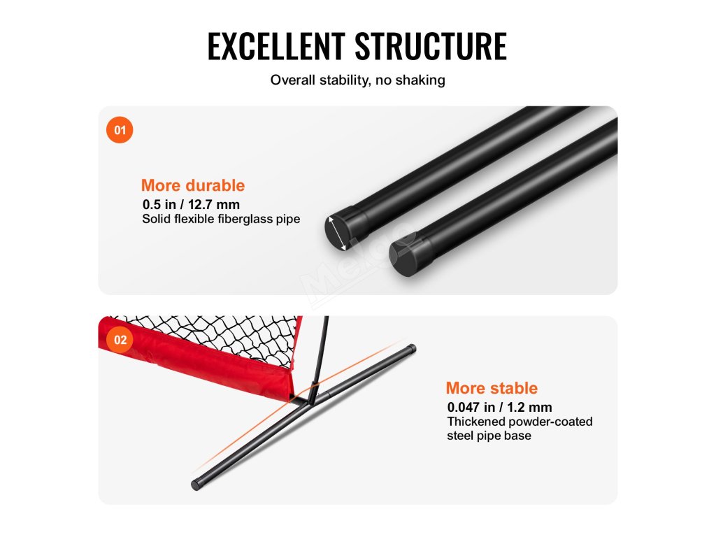 Tato ochranná baseballová síť se vyznačuje vynikající stabilitou a odolností. Materiál z ocelových trubek dokáže odolat obrovské síle nárazu, která vzniká při nadhozu míčku nadhazovačem, a zajišťuje, že se síť vlivem nadměrné síly nenaklání ani nedeformuje.