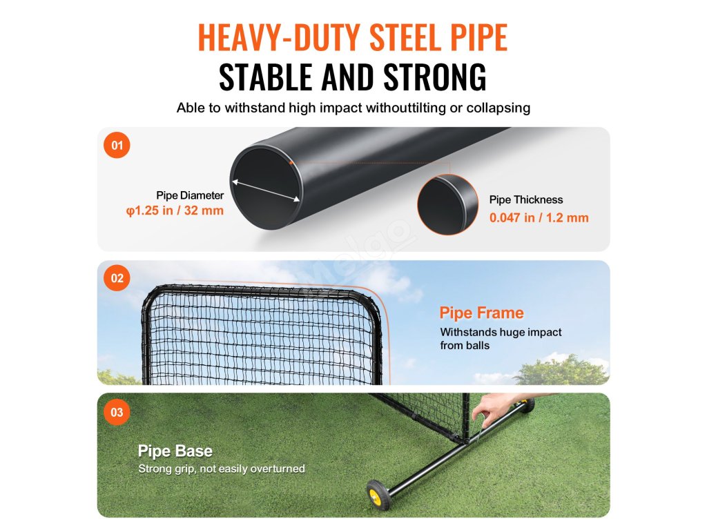 Tato ochranná baseballová síť se vyznačuje vynikající stabilitou a odolností. Materiál z ocelových trubek dokáže odolat obrovské síle nárazu, která vzniká při nadhozu míčku nadhazovačem, a zajišťuje, že se síť vlivem nadměrné síly nenaklání ani nedeformuje.