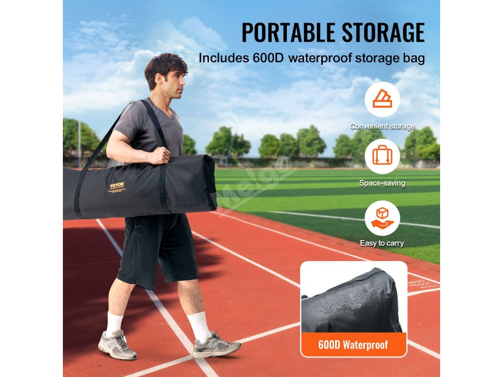 Je dodávána s nepromokavou taškou 600D pro snadnou demontáž a skladování, takže je tato zástěra přenosná na různá sportoviště.