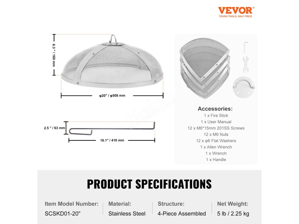 Ochranná síťka proti jiskram 20" kulatá, zesílená ocel, s kroužkem