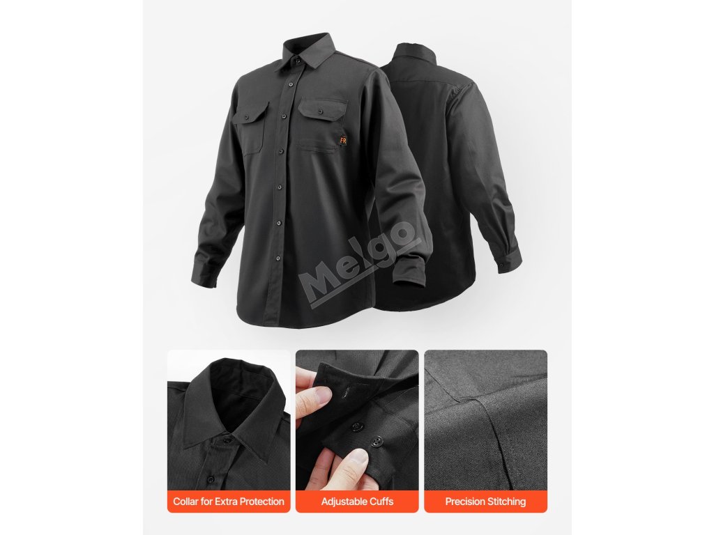 Zůstaňte v bezpečí a pohodlí s našimi 7 oz. FR z čisté bavlny. Je nehořlavá, prodyšná, lze ji prát v pračce a poskytuje spolehlivou ochranu proti jiskrám a plamenům. Díky nastavitelným manžetám, bezpečnému límci a 2 praktickým kapsám je ideálním společníkem při svařování.