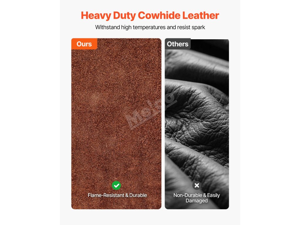 Naše nehořlavé, žáruvzdorné a odolné svářečské návleky z hovězí kůže poskytují spolehlivou ochranu před jiskrami a plameny. Díky elastickým manžetám na zápěstí a nastavitelným páskům na suchý zip na horní části paže zajišťují bezpečné a pohodlné nošení pro bezpečnější svařování.