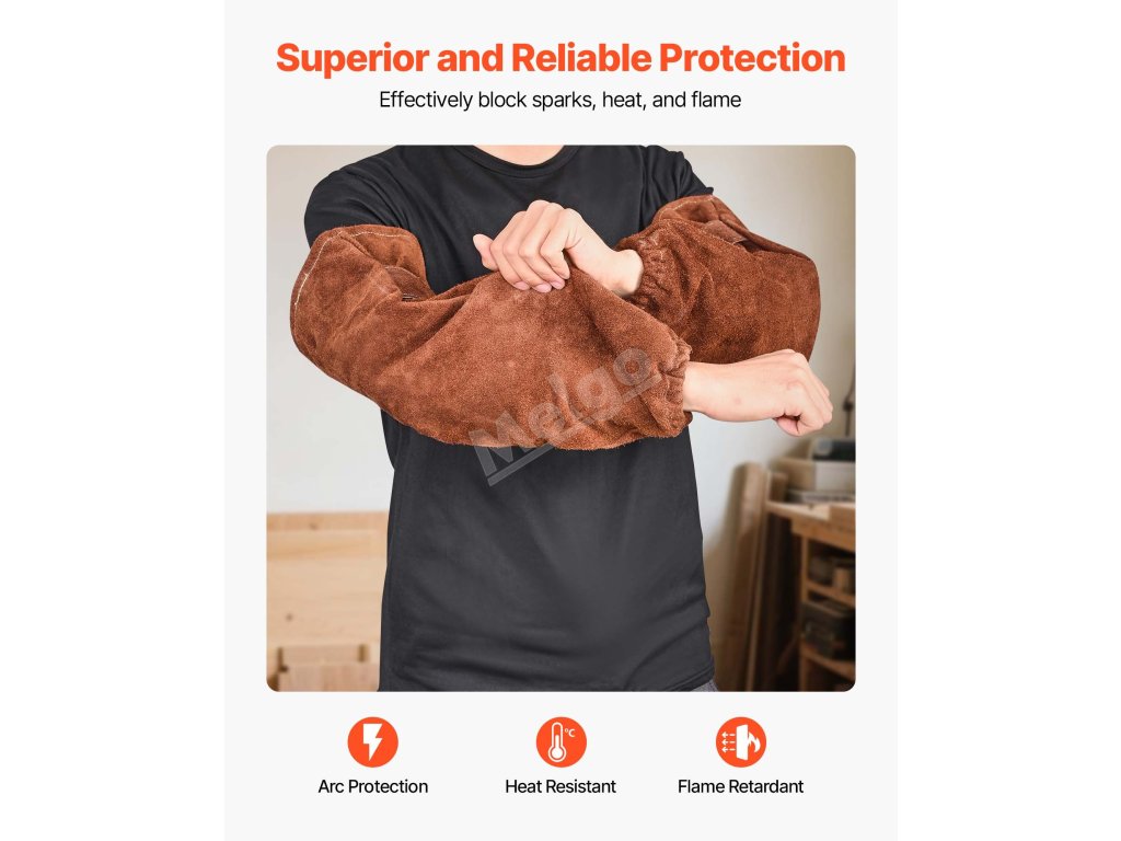Tyto ochranné návleky na ramena mají elastické manžety na zápěstí a nastavitelné pásky na suchý zip na horní části ramene, které zajišťují bezpečné a pohodlné nošení a zároveň zabraňují pronikání jisker, prachu a nečistot.