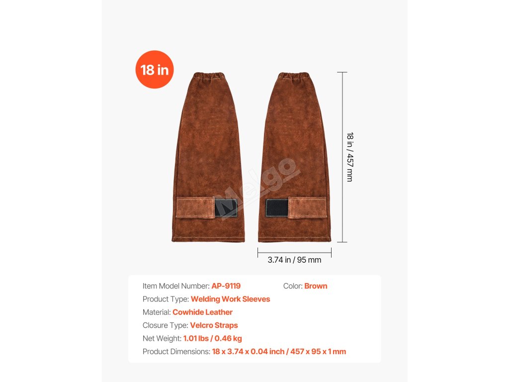 Tyto 18 palců/457 mm dlouhé svářečské návleky nabízejí rozšířenou ochranu, která pokrývá oblast od zápěstí po horní část paže, a jsou ideální pro různé aplikace, které chrání před jiskrami, teplem a odletujícími úlomky.