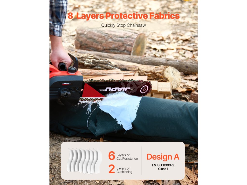 Ochranné návleky na pilu, třída a, 8 vrstev, nastavitelný pás, L