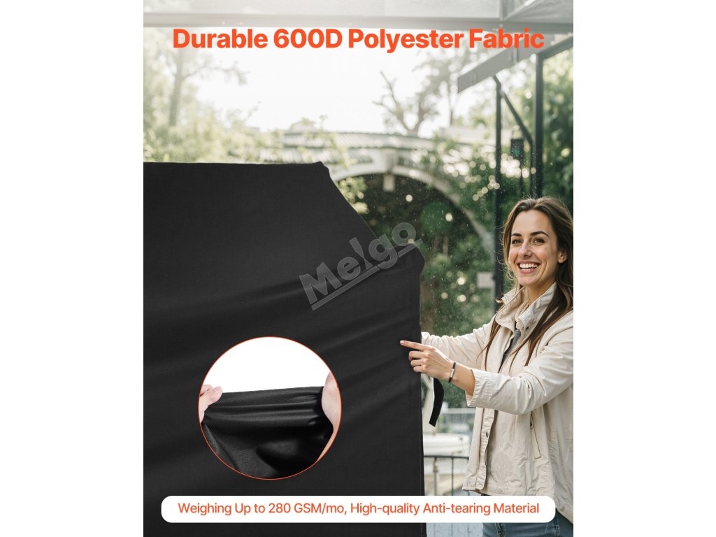 Vyrobeno ze 3 vrstev vysoce kvalitních materiálů: vrstva PVC, vrstva polyesterových vláken a nepromokavá vrstva. Tento kryt grilu zajišťuje odolnost proti vodě. Čtyři rohy jsou zesíleny, aby odolaly opotřebení. Šití je pevně utkáno, aby se zvýšila vodotěsnost.
